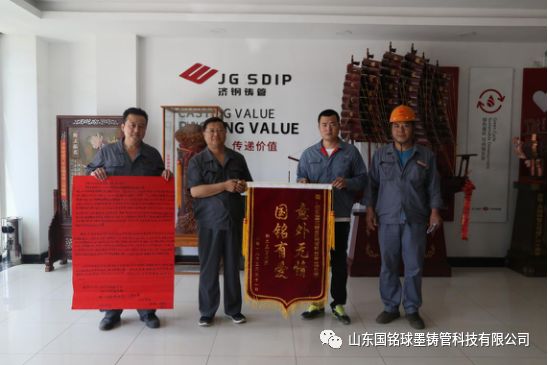 5.31日上午,受捐对象动力厂汽轮机发电工孟子俊将一面写着“意外无情、国铭有爱”的锦旗以及一张感谢信在动力厂领导的陪同下来到公司,亲手交到了工会主席王海手里,感谢公司及同事们对他们一家的无私帮助。